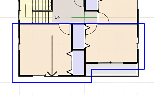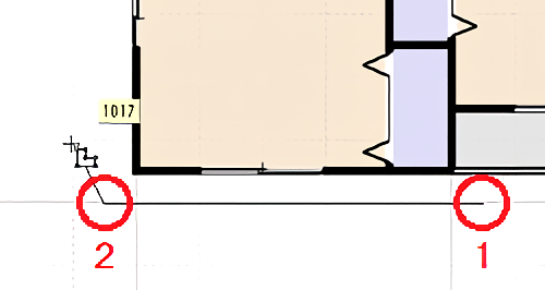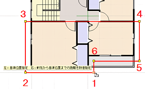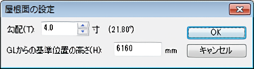 ![]() 1.屋根パレットの[屋根種類選択]で[手動(1面ずつ)]を選択し、 [手動屋根]をクリックします。 ![]() ![]() 2.屋根面の軒先(水下)の2点から先にクリックします。 ![]() 次の頂点まで指定した距離で入力したいときは、直前の頂点をクリックした直後にキーボードの[+]キーを押します。 [相対座標値入力]の[X][Y]に次の頂点までの距離を入力して[OK]をクリックします。 ![]() 3.あとは順番に屋根面を頂点をクリックしていき、最後に始点(一番最初にクリックした軒先の頂点)をクリックします。 ![]() 4.マウスカーソルに[左:基準位置指定 右:軒先から基準位置までの距離を数値指定]と表示されます。 ![]() 5.[GLからの基準位置の高さ]には設定されている建物の基礎高や階高から算出された初期設定値が表示されています。 ![]() 6.最初にクリックした軒先に向かって傾斜方向を表す矢印が表示されます。 基準位置やGLからの基準位置の高さを計算する方法は 実際に屋根伏せ図の作成を始めるには、次の2つの方法で作成していきます。 |
