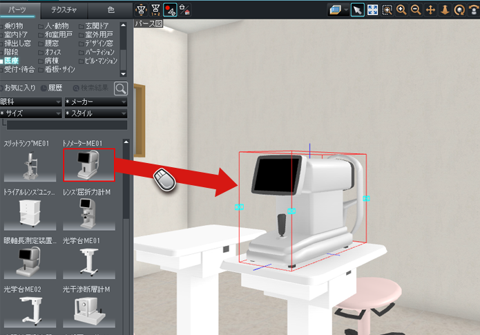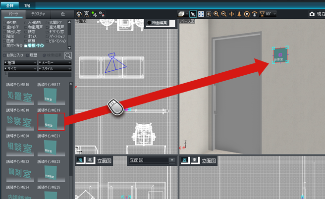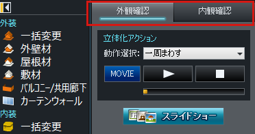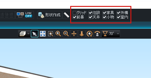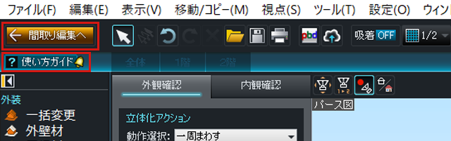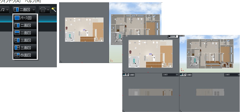 ボタンで、平面図、立面図の表示を切り替えられます。
