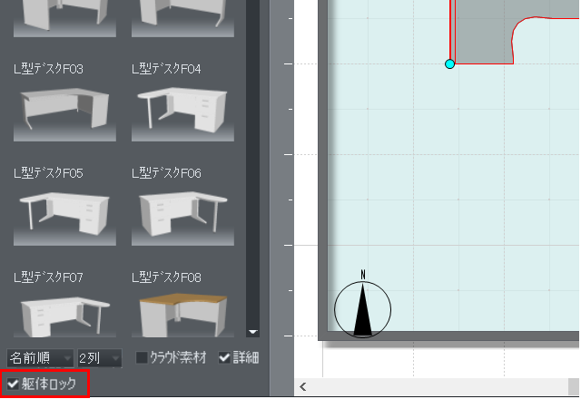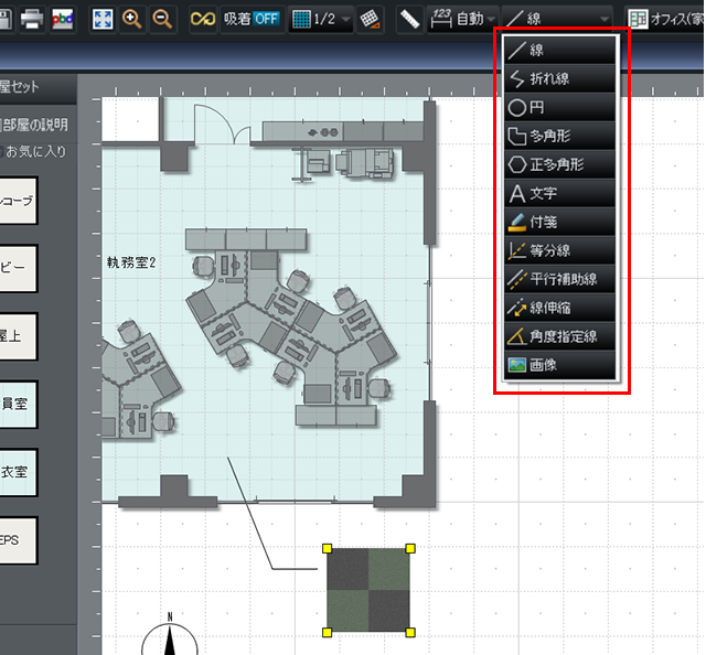 を選択し、[間仕切り]タブに切り替えてパレットから配置します。