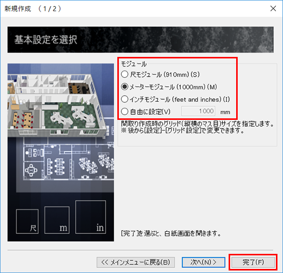 ボタンをクリックし、まずは、基本単位(モジュール)を設定します。