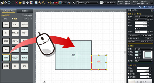 部屋を配置する以外にも、部屋を作成する方法があります。