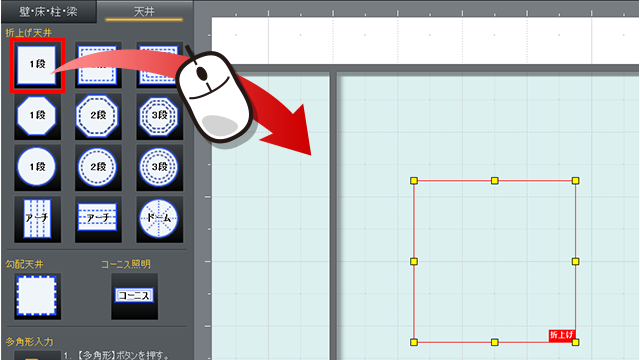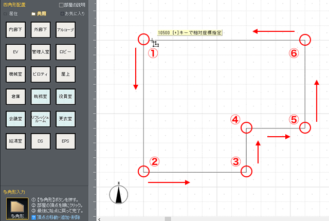 (多角形)ボタンをクリックし、順番に部屋の頂点をクリックします。