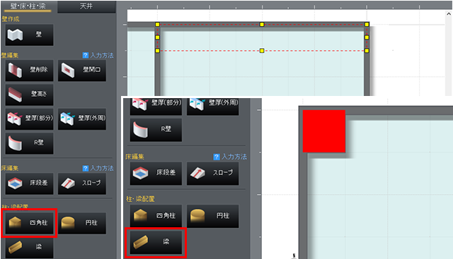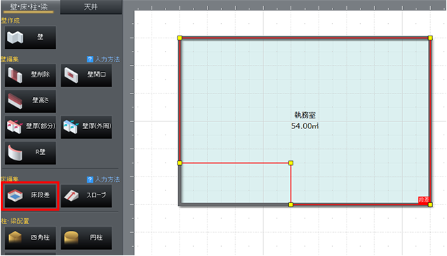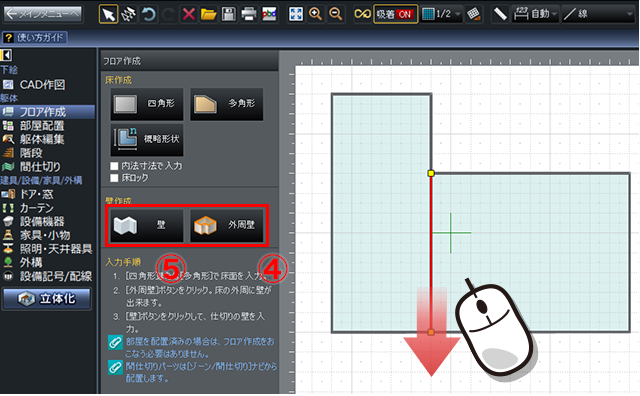 フロアを作成し、後から任意の場所に壁を設定する方法です。