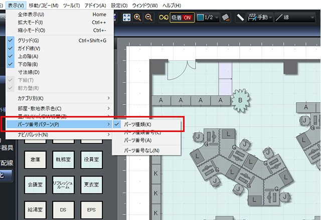 1.[ツール]メニューの[作表]-[パーツ記号凡例]を選択。