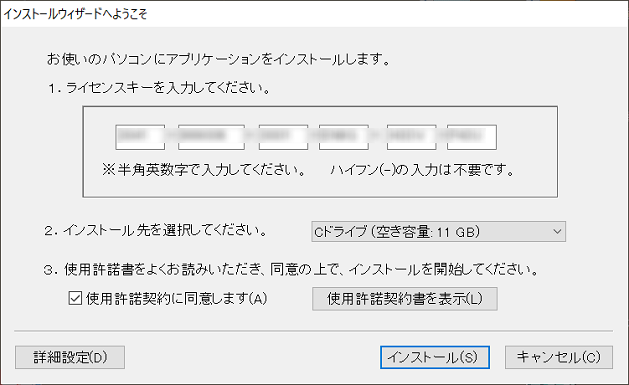 ダウンロードしたインストールプログラムを実行します(セットアップディスクをお持ちの場合はパソコンのディスクドライブにセットして実行します)。