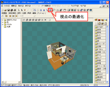 作業がしやすくなるように、「視点の最適化」機能や「ズーム」機能などを使って視点を調節します。下図は、手順4で新しいウィンドウが開いた直後に「視点の最適化」機能を使った場合の図です。