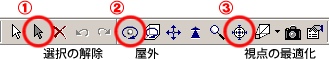 | 1.まず「選択の解除」ボタンを押して、部品や形状が何も選択されていない状態にします。 |