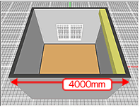 | 1.一辺が4000mmの部屋に、水平な梁を利用して斜め天井を作成します。 |