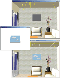 対象となるオブジェクト(ここでは壁に設定した部品)に模様を貼り付ける。向きがあっていない場合は、再度「模様の設定」パネルで角度を調節する。