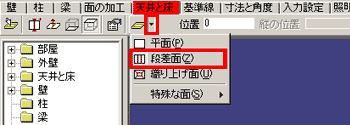 [天井と床の設定]ボタン の横にある「▼」をクリックするとプルダウンリストが表示されますので、[段差面]を選択します。