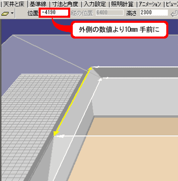 外側の[位置]の数値が「-4200mm」なら、内側の[位置]の数値には「-4190mm」を入力します。
