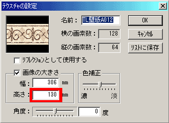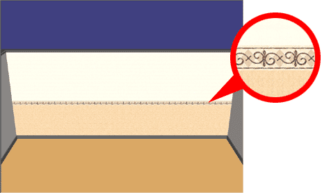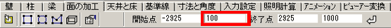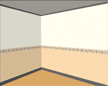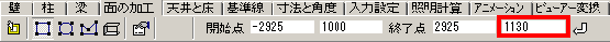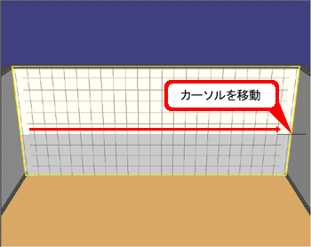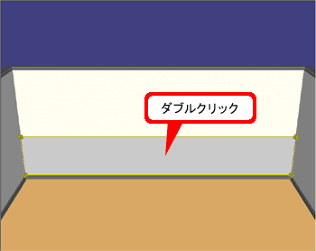 上部の面を選択すると壁全体が選択されるので、壁紙を上下に分けたように、下部の面の上にボーダーラインテクスチャを貼り付ける細い面を作成します。 その際、 数値入力ボックス[終了点]の右側のボックスに「下部の面までの高さ + 使用するボーダーラインテクスチャの高さ」を入力してください。