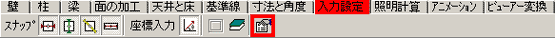 壁を一定の幅、角度で円弧状につなぎ合わせて作成するために、入力の設定を変更します。 タブメニューの[入力設定]から[入力の詳細]ボタンをクリックし、[入力設定の詳細]ウィンドウを表示させます。