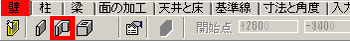 タブメニューの[壁]に切り替え、[連続の壁]ツールを選択します。