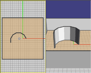 円弧状の壁を作成する場合、数枚の壁にある程度角度を付けて作成します。[角度のグリッド]に数値を入力することで、入力された数値の角度ごとに壁が作成されます。