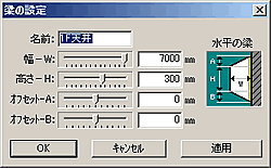 梁と壁面の設置部をダブルクリックすると「梁の設定」パネルが開きますので、任意の数値を入力します。