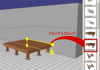 6.パーツメニューリストから先程保存したパーツ「デッキH07_2」を部屋の外壁にドラッグ&ドロップします。