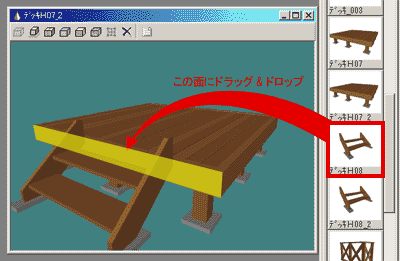 8.右図の面に5.にて保存したパーツ「デッキH08_2」をドラッグ&ドロップします。