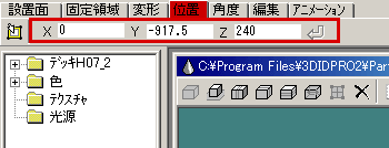 ここでは、「X」に0、「Y」に-917.5、「Z」 に240の値を入力しています。 |