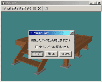 11.「デッキH08_2」のパーツ編集ウィンドウを閉じると[パーツ編集の確認]ウィンドウが開くので「OK」をクリックします。