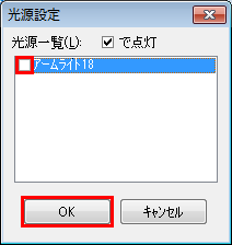 表示された[光源設定]の光源一覧に表示されている照明のチェックをオフにして[OK]をクリックします。