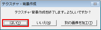 表示された[テクスチャ・背景作成]で、[はい]をクリックして作業を終了します。
