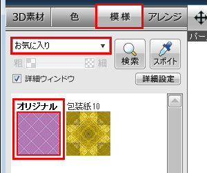 作業終了と同時に、[模様]パレットの[お気に入り]に保存した模様が表示されます。