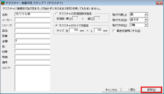 [テクスチャ・背景作成 ステップ7]で、模様の情報を入力します。