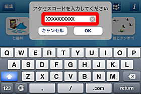 [アクセスコード入力]をタップすると、アクセスコードの入力画面が表示されます。