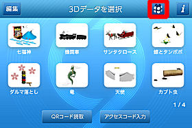 「QRコードを読み取る」「アクセスコードを入力する」は、別途「3Dイラスト AR」用3Dデータの情報を入手した場合に使います。