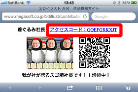 「3Dイラスト AR」用3Dデータのアクセスコードを入力すると、3Dデータの読み込みが開始されます。