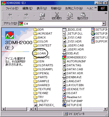 | 4. | CD−ROMの内容のなかに「LOAN」というフォルダがございます。 こちらのフォルダをダブルクリックしてください。 | |
