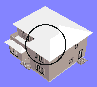| 5. | 開いた間取りをそのままの状態で「立体化」ボタンをクリックして立体化します。 そのままの状態で立体化すると、寄せ棟の屋根が2つ、直角に配置されています。 ここでは手前の屋根を寄せ棟から切り妻に変更します。 |