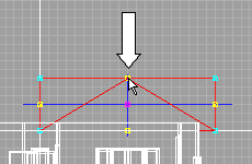 「前から見た図」もしくは「横から見た図」で、作成した屋根の頂点(黄色のハンドル)をクリックし、下にドラッグしていくと、屋根の高さが低くなりますので、適当な高さにします。