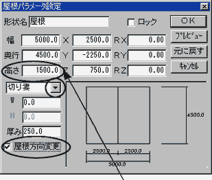 「屋根方向変更」にチェックを入れて「OK」ボタンをクリックします。 |