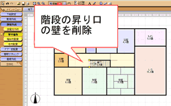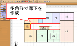 次にその廊下以外の部分に多角形で廊下を作成し、階段の昇り口の壁を削除します。