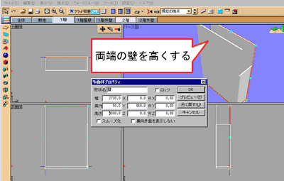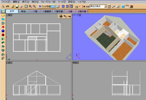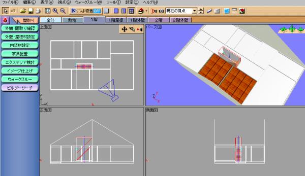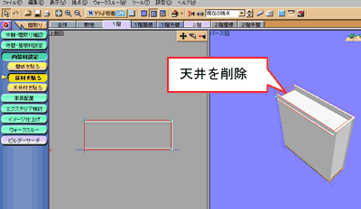 *はじめに2階の吹抜けを削除すると「2階」「2階外壁」「2階屋根」のフロアタブが消え作業ができなくなるので注意してください。 |