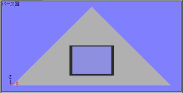 妻壁に直接開口はできません。新規形状作成ツールの[押し出し]ツールで、図のように分割した