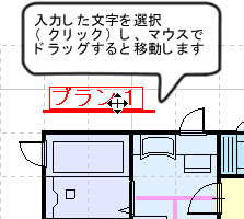 入力した文字は移動することができます。文字を選択しドラッグして移動します。