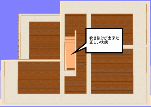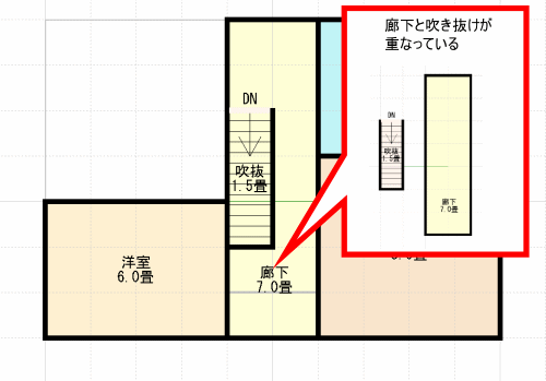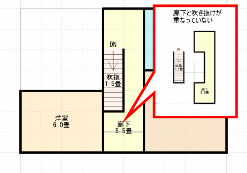 「吹き抜けと部屋(この例では廊下)が重なっていない正しい例」
