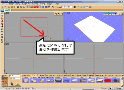 カーソルが選択した形状ツールのアイコンに変わりますので、上面図でドラッグして作成します。