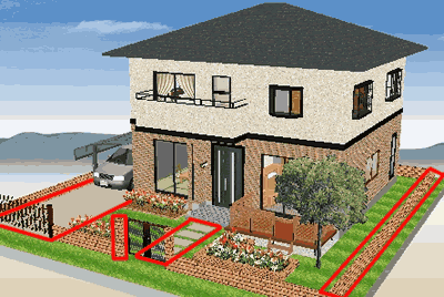 また、間取り作成から立体化した外壁に、飾り柱の追加や屋根の変更、庭に塀などを追加で作成するなど、よりリアルな外観を表現することができます。