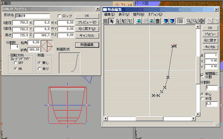 断面編集画面の頂点の取り方でさまざまな形のグラスを作成することができます。