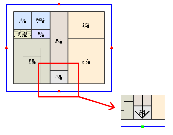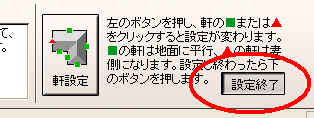 - 流れの下側となる軒の▲マークをクリックし■マークにします。画像