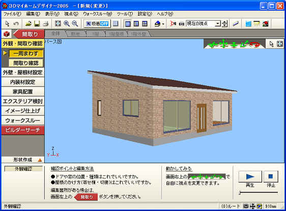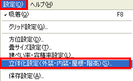 - [設定]メニューから[立体化設定(外装・内装・屋根・階高)]を選びます。画像