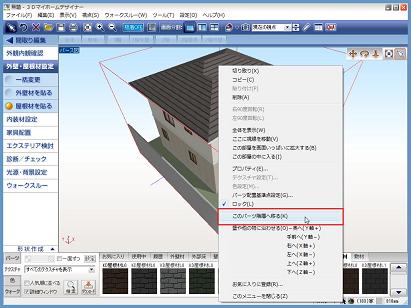 屋根面の階層へ移動するため、屋根をクリックして選択し、右クリックして[このパーツ階層へ移る]を選択します。