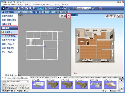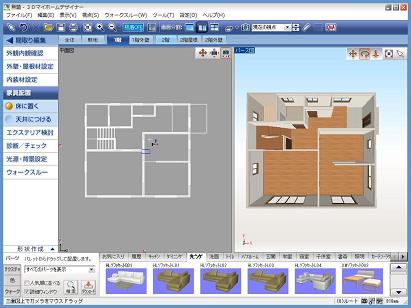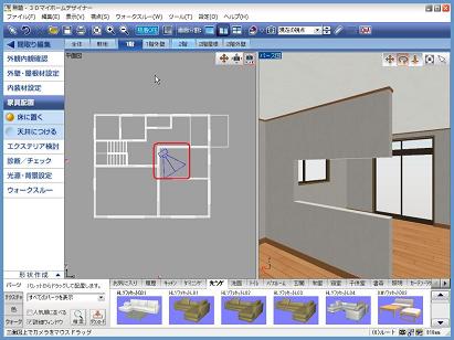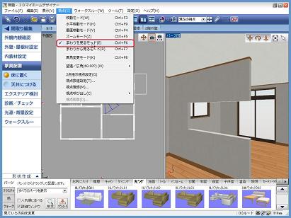 画角を変更するには、メニューの[視点]から[望遠/広角]を選択し、リストから任意の角度を選択します。 画角の角度が大きくなるほど視界が広くなりますが、あまり画角を大きくしすぎると家がゆがんで見えます。