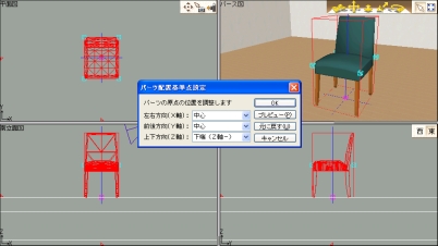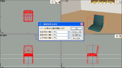 ●パーツ配置基準点を[中心][中心][下端]に設定した場合