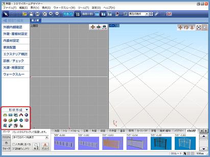 マイホームデザイナーでは間取り作成を利用して家を作成するほかに、「形状作成ツール」を利用して家具などのパーツを作成することができます。