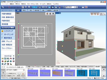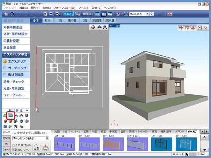 また、間取り作成から立体化した外壁に、飾り柱の追加や屋根の変更、庭に塀などを追加で作成するなど、よりリアルな外観を表現することができます。